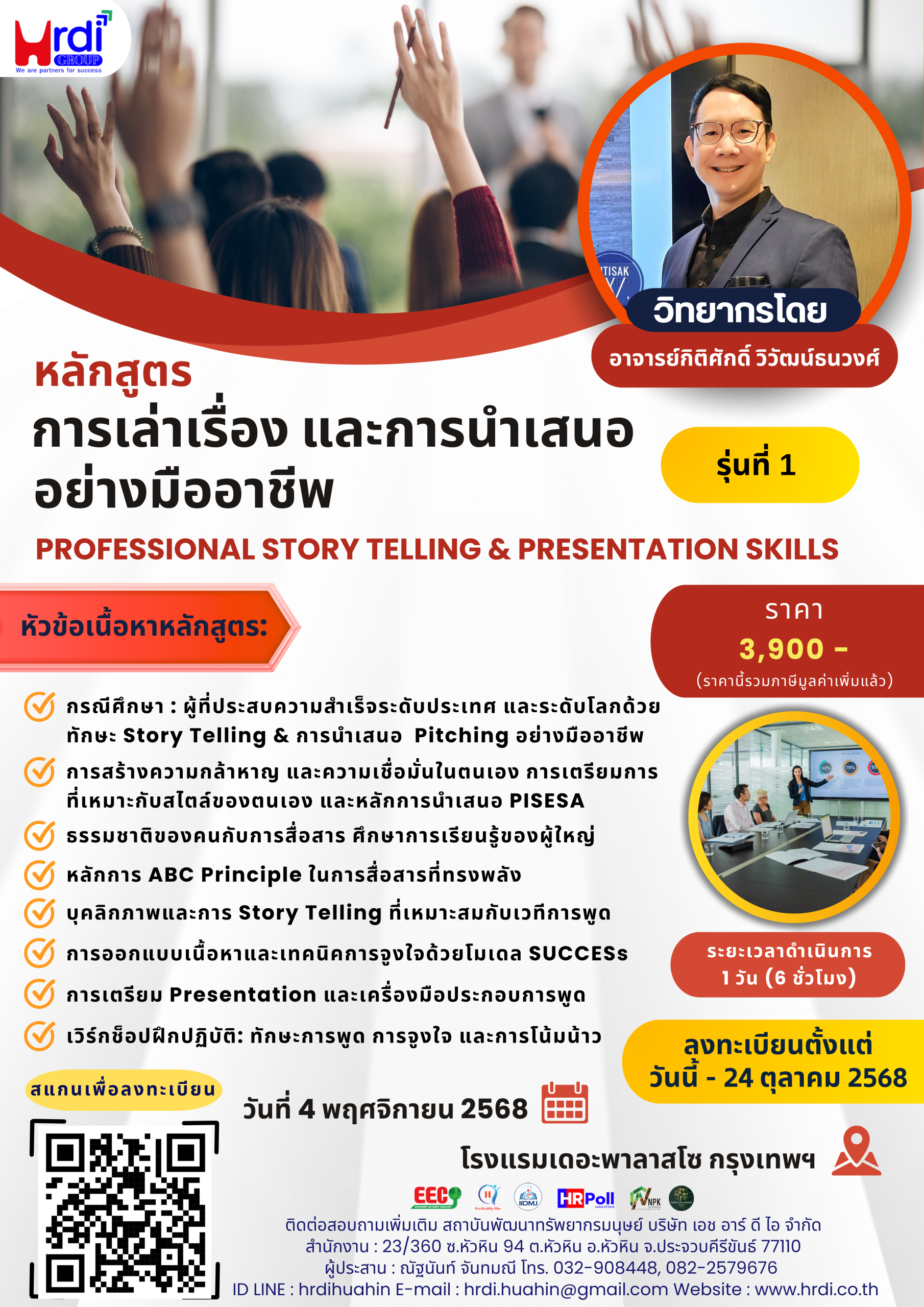 หลักสูตร “การเล่าเรื่อง และการนำเสนออย่างมืออาชีพ” (Professional Story Telling & Presentation Skills)
