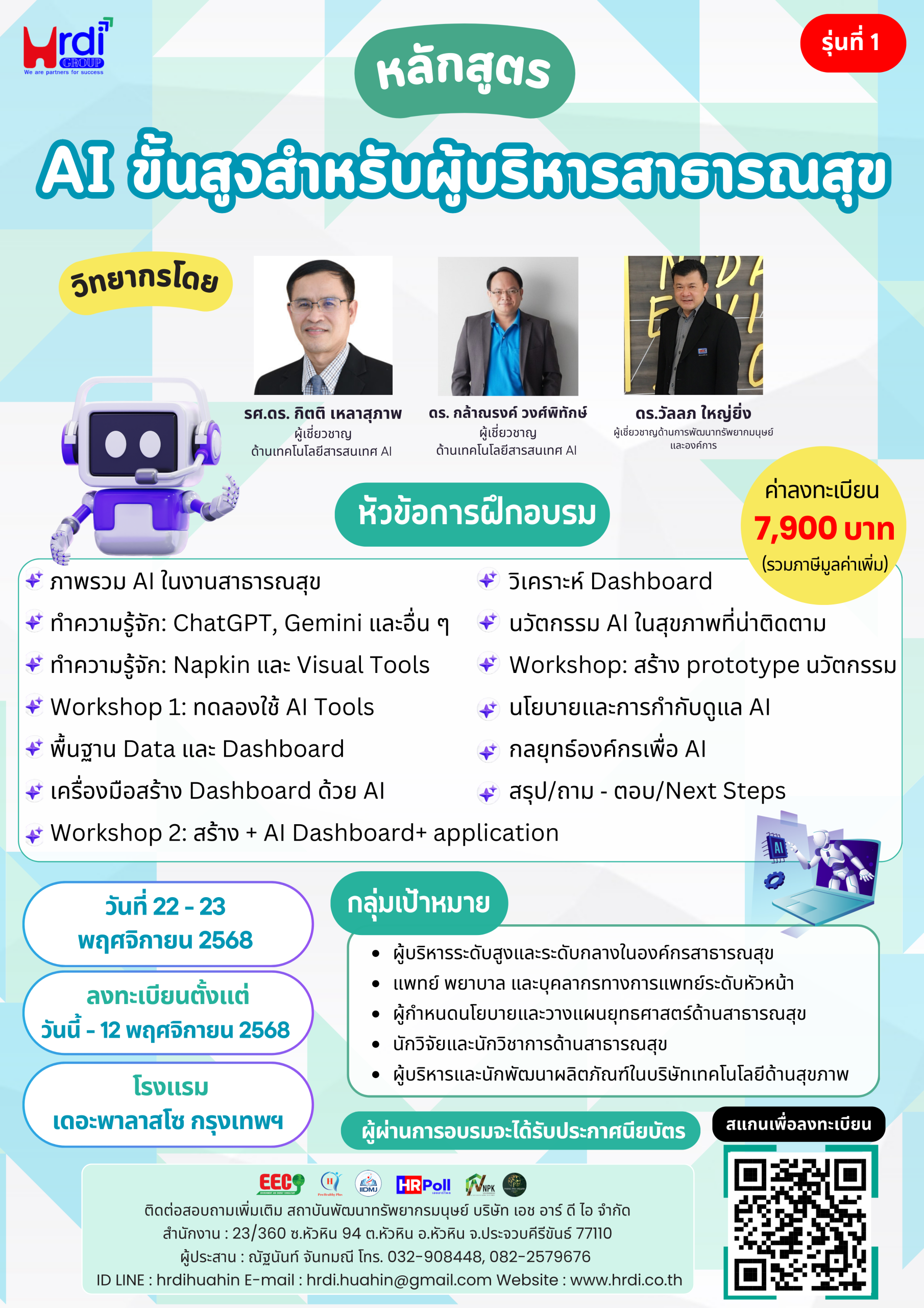 หลักสูตร “AI ขั้นสูงสำหรับผู้บริหารสาธารณสุข” (High-level AI for public health executives)