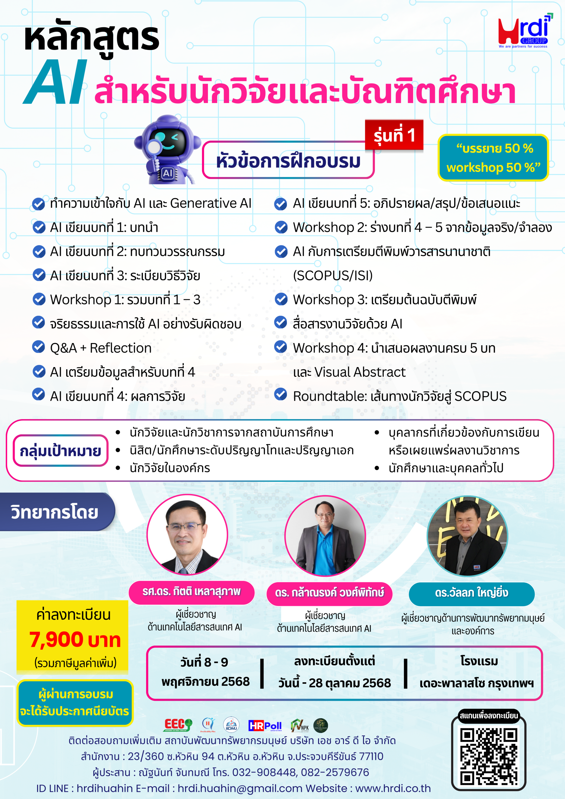 หลักสูตร “AI สำหรับนักวิจัยและบัณฑิตศึกษา” (AI for Researchers and Graduate Students)