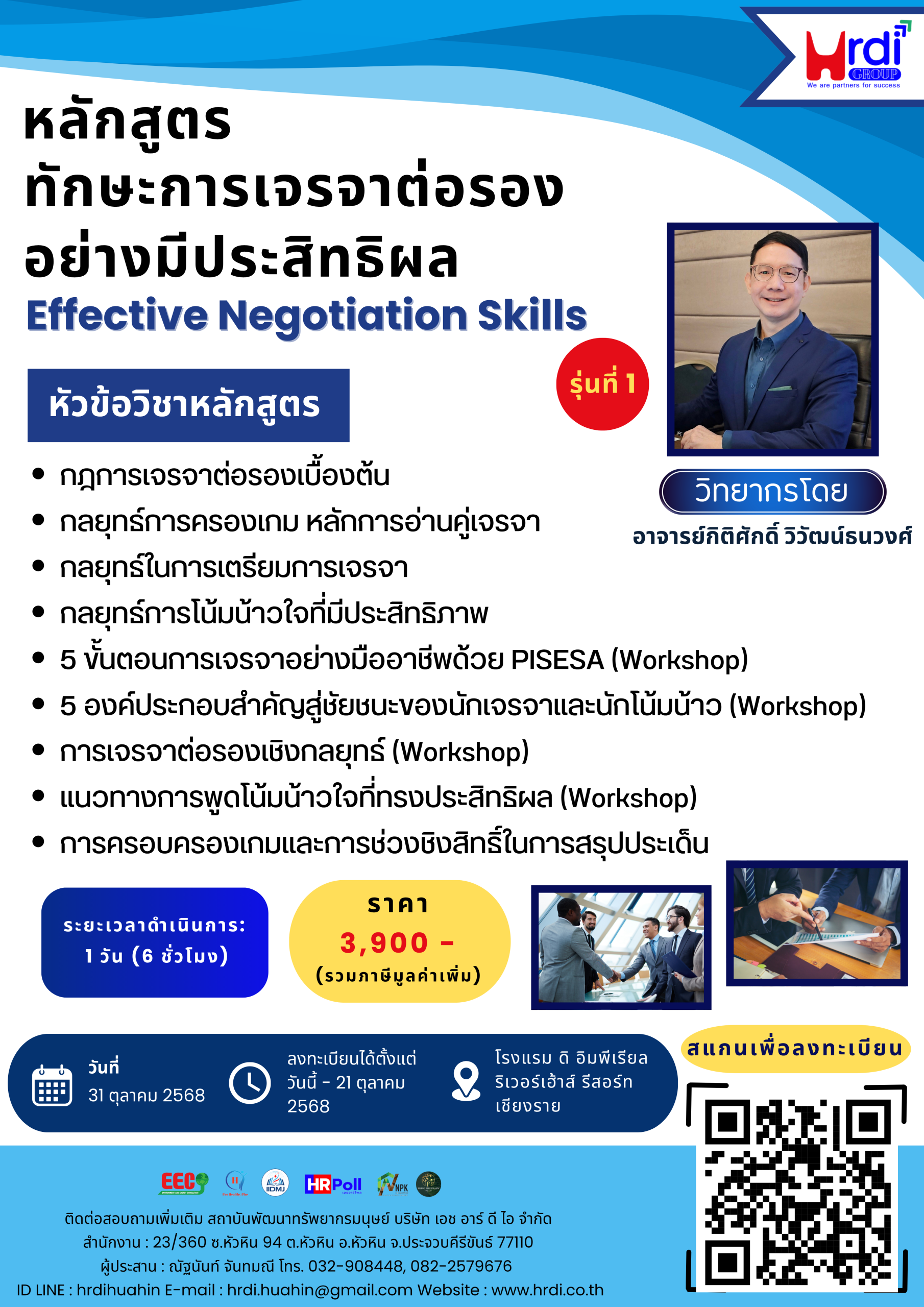 หลักสูตร “ทักษะการเจรจาต่อรองอย่างมีประสิทธิผล” (Effective Negotiation Skills)