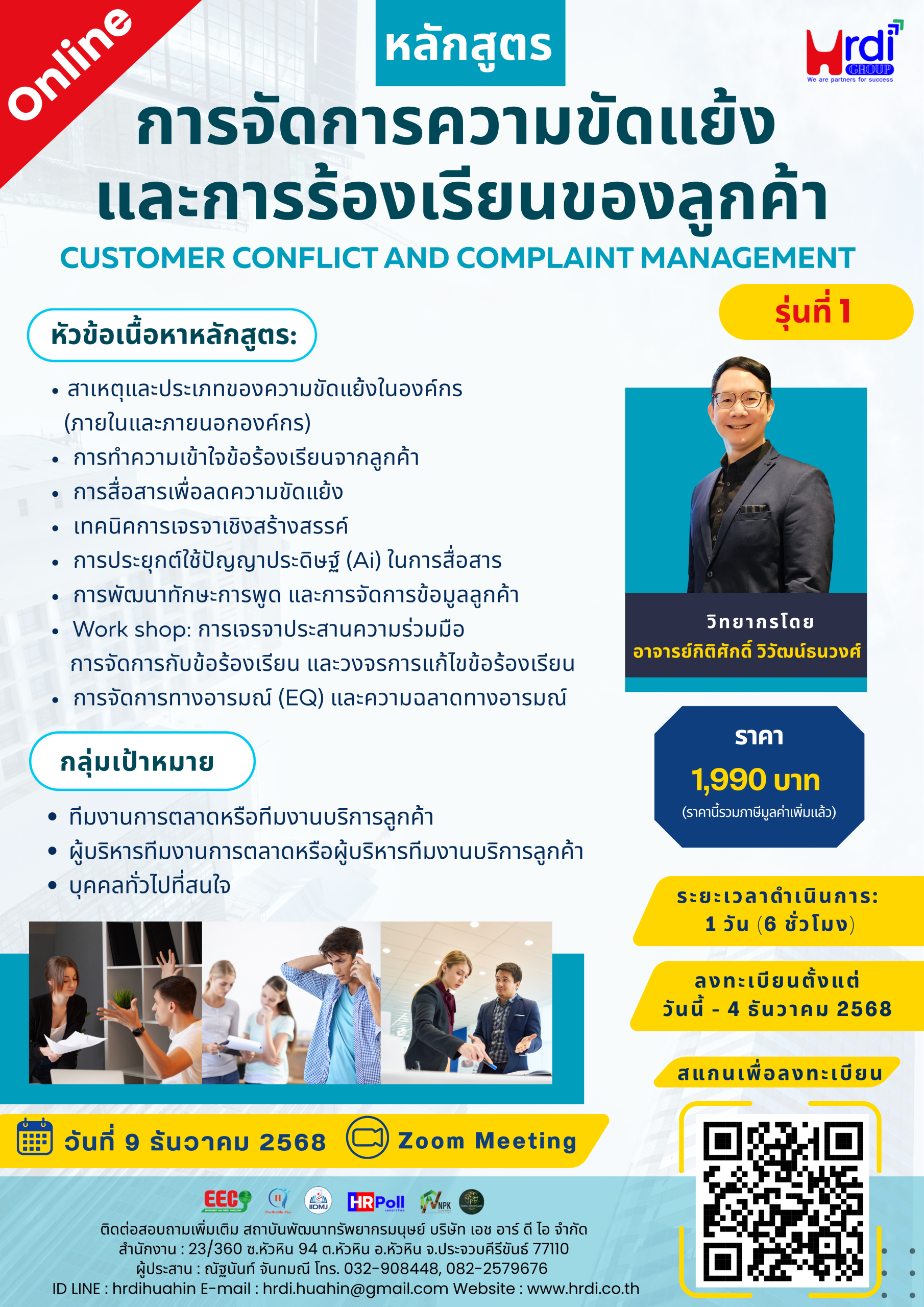 หลักสูตร “การจัดการความขัดแย้ง และการร้องเรียนของลูกค้า” (Customer Conflict and Complaint Management)